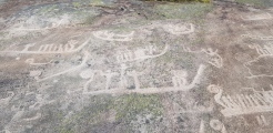 Evjestien is one of the largest rock art sites in Østfold, Norway. The site consists of several rock carvings in several concentrations spread over a large rock surface, inside a neighbourhood with modern houses and gardens. The rock surface is sloping slightly to the east. Not long ago the moss and vegetation cover was removed making the carvings easy to see even though they have never been painted.