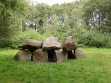 A well preserved and rather charming skeleton of a three capstone passage (assumed) grave. It is oriented approx. NW-SE. The chamber measures 5.5m by 3.1 2.7m [1]. Clear length 3.9m. It is one of the few completely unrestored sites in the Netherlands.