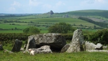 An impressive long cairn (11km south of Fishguard on a public footpath) with, reputedly, one of the largest capstones in Britain weighing more than 60 tonnes. To add to this a v-shaped forecourt similar to Pentre Ifan remains. The forecourt faces a large outcrop to the east.
