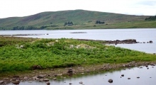 The remains of a broch, situated on a spit of land projecting into Loch Naver, having an outwork and a causeway on the landward side. The broch originally measured 52ft over a wall 12ft wide at the entrance on the SE. Walling is visible only for a short distance to the north of the entrance, but the stones appear to have been very large.