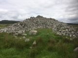Drumwhirn Cairn is impressive on approach however closer inspection shows significant stone robbing. The summit has been excavated leaving a dirt filled hollow behind. Drumwhirn Cairn is on a highpoint with extensive views all round. It is around 30 metres across and 5 metres high. It must have been spectacular before people started messing with it.