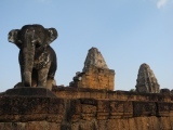 The East Mebon is a 10th Century temple at Angkor, Cambodia. Built during the reign of King Rajendravarman, it stands on what was an artificial island at the centre of the now dry East Baray reservoir. The site was dedicated to the Hindu god Shiva and honours the parents of the king. Its location reflects Khmer architects concern with orientation and cardinal directions.