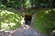 A round tumulus (45m alt.). Often mistaken for Oniyakubo Kofun with ship engravings (see nearby sites). Although this tumulus has no engravings its grand chamber is worth visiting. Oni-no-Iwaya means the cave of giant ogre (=oni).