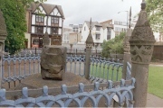 Kingston upon Thames: the Coronation Stone, and digging a bit deeper to get past the nonsense, also Where England Began, and bad history for good (and not-so-good) causes? both by Robert J S Briggs. A long and interesting read, linked from the comments on our page.. Stone in Kingston-upon-Thames, Surrey / SW London. Supposedly used as the Coronation Stone for West Saxon kings in the 10th Century. In 2017 Kingston Council was considering an option of re-siting the coronation stone from the Guildhall's frontage back to its original location within the churchyard of Kingston's old parish church, All Saints Church. This appears to have fallen through.