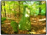 This locally well known and popular granite monument called Muík can be found in the forest north from the little village of Dobice, Bohemia. This slender stone is about 1.5m tall and is situated just a few steps from the main tourist trail. It is said that when it is lit by the sun rays from a specific angle, the shadow creates the appearance of a dwarf. This is how the stone got its name.