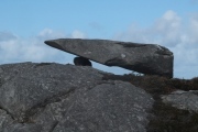 This short paper describes a number of propped stones recently recorded near Bostadh on Great Bernera, in the Outer Hebrides, and relates them to very similar features in diverse parts of England, Wales and Ireland. This report is essentially a segment of ongoing fieldwork and the intention is to promote greater awareness and discussion of these ambiguous and widespread megalithic structures. Read the paper as a PDF with embedded images here, or browse the sites and photos on the Portal from the links in the text below on our page.. SC1: NB13715 39472. The feature to which the writer had originally been directed by John Billingsley. A wedge-shaped slab tapering 50cm to 5cm, 200cm x 330cm. A very imposing lunullar shape with two props, the smaller being a mass of mineral including a large amount of rose quartz very similar in hue to the props at CG2 and 4. Dots Stone, on West Penwith, Cornwall, (SW42692 36165) is a substantial block elevated by a similar cobble consisting essentially of a mass of mineral with no similar stones being evident within a 200m radius.