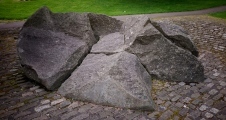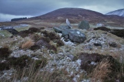 A Glacial Erratic made of Whinstone, at the top of the Clune Brae. Deposited here during the last Ice Age, from Loch Long 15+km away to the NW. It measures about 3m x 3m with a maximum height of 1m. Bogles in Scots myth were mischievous spirits, and the Bogle Stane was once the supposed abode of a bogle who used to hide behind it and scare folk.