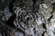 This is the sloping slab immediately (1m) to the west of the southern half of the main facade at Cairnholy 1 Chambered Cairn, Dumfries and Galloway. There is a cupmark with 5 partial rings, approx 18cm diameter, not easy to see in full light, easier with slanting torchlight. The Scottish Rock Art Project has given this the number 2 as it was previously unrecorded.