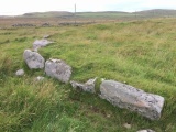 A cist comprising side and end stones, measuring 0.7m. by 0.6m wide internally, aligned on a bearing of 130 degrees. The cover-stone is missing. Built into the south-east side of one of a group of cairns which are very close together.
