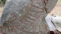 This place enjoys great popularity in the pagan/heathen scene, which also explains the large number of offerings at the runestone. Translation of the runes is on our page.