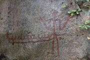 Rock Art in Västergötland. There are about six hällristningspanels (rock art panels) near here. Many different figures can be seen, for example: ships, wagons, foodbeds, people and cup marks.