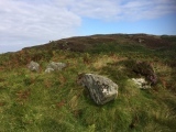 Frachdale is a robbed out Clyde group chambered cairn on the Oa peninsula of the Isle of Islay. The ruined Frachdale buildings are easily reached and a rough road runs up the hill to Frachdale Chambered Cairn and Coille A'chnoic Mhoir standing stone, easily spotted a quarter of a mile up on the right.