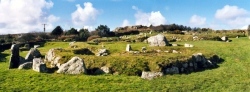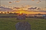 Photo by Energyman: First Gleam on the 7th July 04:10 on an alignment with 3 stones. . One of the most easily accessible and yet most complete stones circles in Britain. This is a wonderful site consisting of a ring 19 stones surrounding 3 in the centre. A row of three stones can be seen on a hillock on the opposite side of the road. It is very reminiscent of Castlerigg, but on a smaller scale with the stones all graded in height with the tallest to the south-east. A number of the stones have large chunks of quartz embedded into them.