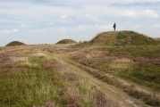 Prof Susan Oosthuizen: Alignments of Bronze Age barrows in prehistoric Jutland were used to guide transhumant (nomadic) herds making their way between settlements & far-distant pastures, and as statements of common rights to specific areas of grazing. More in the comments on our page. This Oldtidskirkegården or 'old graveyard' is a collection of 32 barrows from the Bronze Age. It is the largest surviving cluster of large mounds in Denmark. In the nearby Dover Plantation, a reforestation area, there are 14 round and two long barrows. On the other side of Boddum Bæke, a stream valley, there are another 12 barrows.
