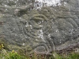 Andy H writes: "Situated a few yards NNE of the Badger Stone on Ilkley Moor, this Cup and Ring marked boulder has an unusual 'half-flower' motif on its northern face. Carry on down the hillside and you will eventually arrive at the Barmishaw Stone (now very badly faded, but featuring 'Ilkley Ladder' style markings), and further on to Willy Hall's Wood Stone amongst the trees.