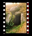 Jættestue (Passage Grave) in Randers, Denmark. A scan from a 1993 diapositive: the entrance to this well preserved passage grave, slightly restored in 1984. (Danish term 'Jættestue' translates as ~ giant's room/chamber). Surrounded by the buildings of Krogvad farm.