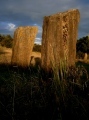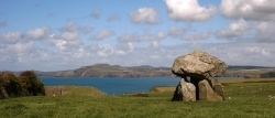 This Neolithic burial chamber stands in splendid isolation overlooking the bay. The capstone is supported on three of the seven upright stones. Earlier this century stones were used to block the holes in the sides of this tomb and it was used as a sheep-shelter.