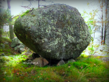 This type of rock formation is known as a propped boulder. They are often described as a natural feature placed by glaciation, but the theory of them being deliberately placed by man also has its supporters. This particular stone is in the St Petersburg area of Russia