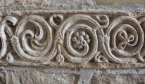 An Anglo Saxon cross shaft, and many other contemporary fragments at St Mary and St Hardulf's, Breedon on the Hill, Leicestershire. Whilst the church as it exists today is largely 13th century, it incorporates remains of the Medieval Priory Church of Breedon Priory and many 8th and 10th century Saxon sculptured stones.