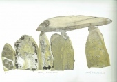 A collagraph print of Pentre Ifan, by Avril Macdonald, which is part of an exhibition running from the 13th to 30th March at the Barbican Centre Library in London. More details here. Also Sem has created a video guide to five easy to visit sites in Wales, which also features Pentre Ifan. You can watch the video in our forum.. One of the most spectacular and famous monuments of its type it consists of a tilted capstone perched on three uprights. A blocking stone obstructs the doorway and a semi-circular forecourt is found at the southern end.