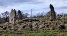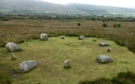 Stone Circle in Arran, part of the Machrie Moor complex (see the nearby sites from this page). This circle is comprised of 11 stones, six granite boulders and five sandstone slabs, set alternatively to form a circle.