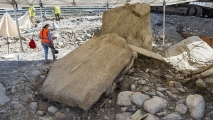 Recently discovered dolmen, or megalithic tomb, during construction of an underground garage in Sion, Switzerland.