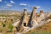 These fascinating naturally-formed rock citadels (their shapes including pinnacles, cones, domes, columns and pyramid shapes) have survived because they are made of a much harder rock than the plateau around it which has since weathered away.