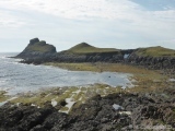 Faint remains of hilltop fortifications can be seen on the southern side of the inner head of the Worms Head promontary which can be reached across a causeway at low tide. The single line of defence can be seen as an outward facing scarp up to 4m wide and lm high running in a semi-circle along the sloping southern side of the head, the northern side is defended by naturally steep cliffs.