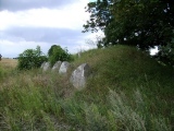 Barrow Cemetery in Yorkshire North - three round barrows in a line, situated in an area where there are many prehistoric monuments, including further barrows as well as field systems and clearance cairns.