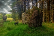 The remains of the stone circle in Blackpark Plantation on the Isle of Bute has only three stones left standing, the remains of a larger complex of seven stones and is now surrounded by a forestry plantation.