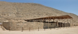 Ancient Ceremonial/Civic Site in Ancash State, Peru. One of the earliest sites excavated in what is now known as the Sechin Complex, Cerro Sechin is an adobe brick mound topped by a building displaying a wall of granite slabs. This wall is carved with views of warriors and the grisly dead.