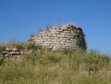 Nuraghe in Sardinia (Sardegna). This decently preserved complex nuraghe is located south of the road from Nuragus towards Nurallao, on a low hill. The main tower is currently 6m high, it survived in fairly good condition, with partly preserved tholos chamber including three niches. Remains of a quadrilobate bastion are in much worse condition, but outlines of some of the towers are still distinguishable. The nuraghe is built of limestone. Around the structure there are remains of a Nuragic and Roman settlement.