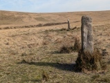 Two stones standing on the northern slopes of Metheral Hill, which turn out to be marked on the map as Boundary Stones. They are both about 5 - 6 feet tall, and on close inspection have a T carved in them. They have obviously been here a long time as they are all weather worn, so much so that I wonder whether they were ever anything else.
