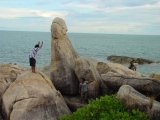 Two legendary rocks on Koh Samui island, Thailand, known as Hin Ta and Hin Yai Rocks (the Grandpa and Grandma rocks). For the not so observant, they resemble male and female genitalia. The beachside rocks, located between Lamai and Hua Thanon, raise indulgent chuckles or embarrassed titters from those who go to see them. Even stranger, they are close to one another, giving rise to a convenient legend explaining how they came into being.