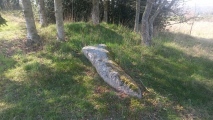 To the west of Metheral Circle is what looks like a ruined kerb cairn. Two of its kerb stones are still standing with other fallen ones where they fell. There seems to be a ruined cist within the center of the cairn.