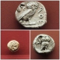 Palazzo Zuckermann museum, in Padova houses a collection of modern and medieval applied art as well as an interesting collection of coins (some are very old indeed!). Pictured are silver owl coins from Athens (V BC) and an electrum (gold and silver alloy) lion's head from Lydia (VI BC).