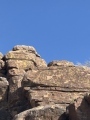 Hundreds of petroglyphs in Arizona, from the Hohokam era and before carved into the rocks. The site’s glyphs date to approximately AD / CE 800 at the earliest and are are of a variety of designs, depicting anthropomorphs (human-like figures, but archaeologists are unsure if they depict humans, deities, or something else), animals, and designs such as spirals. The meanings of most of the petroglyphs are unclear, however one of the spiral glyphs on the west face of the rock formation interacts with the sunlight in a way that indicates its use as a calendar. During each fall equinox and summer solstice, the light interacts with the glyph to form a “light dagger” through the center of the spiral.