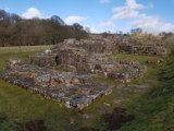 Turret foundations and bridge abutment. Part of Hadrian's Wall. The movement of the river across its valley has removed or covered the part on the other side of the river.