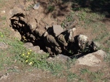 Nuragic sacred well in Sardinia (Sardegna). One of the smallest Nuragic sacred wells in Sardinia is located north of Nuraghe Santa Sabina. The well is circa 2m deep, its staircase is 5m long. The vaulting of the well survived only partially. The monument may be of Final Bronze Age or Early Iron Age date.