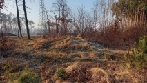 Barrow Cemetery south-east of the village of Stendell in Brandenburg. Most of the barrows are quite shallow and therefore not all of them are easily recognisable due to the vegetation. Forestry workers have left deep tracks on some of the barrows with their equipment.