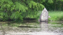 Kervenahuel (SW of Belz) Morbihan. At the very end of the long Etang du Sac'h, in a private property, another "menhir mouillé" as we call them (wet menhir).