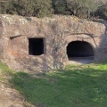 Domus de Janas are typical Sardinian rock cut tombs dating back to the Neolithic. Only one tomb remains almost intact, with three interconnecting rooms. The entrances of two rooms are well carved. Traces of red ochre-based paint are preserved on the walls.