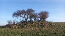 A burial mound in a pasture south-west of the village of Flieth-Stegelitz in Brandenburg. The north side of the barrow is completely covered with large stones. But it can still be recognised from the south.