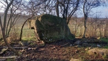 A newly discovered cup marked stone on a pasture southeast of the village of Stegelitz in Brandenburg. The stone with the newly discovered cup marks lies on the edge of a destroyed burial mound that appears to have contained a dolmen and this was probably the capstone. The burial mound had already been registered, but the cups on the stone were previously unknown. It has at least 5 cup marks on the east-facing side.