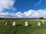 Proposed mobile phone mast in sight of The Merry Maidens, The Pipers etc. Local residents are objecting and you can give your views online, see the latest comment on our page. Restored in the 1860s, this 23.8m (78-foot) perfect stone circle is Cornwall's pride and joy. Each of the nineteen stones is about 1.2m (4 feet) high, and evenly spaced at about 3.7m (12-foot) intervals. There is a well-known tradition that the stones represent maidens who were turned into stone for dancing on the Sabbath.