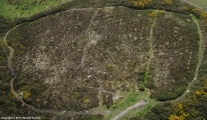 A propped stone, newly identified by author and tour leader Peter Knight, on Dartmoor's Eastern Tor. It overlooks stone rows, cairns, menhirs, and enclosures of the Drizzlecombe complex. The site contains a capstone 5 ft across, held up by a smaller stone, which rests freely on a 10 ft long, earth-fast grounder. Listed as a glacial or geo-erratic, the Propped Stone may have been human engineered as part of the Drizzlecombe Complex of megalithic stone structures.
