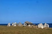 A long dolmen in Skåne wonderfully sited near the sea. Sized 11 x 5 x 0.7 meters, the chamber is 2.7 x 0.7 meters with 16 kerbstones and 5 orthostats supporting a single capstone.