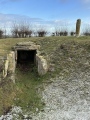 Chambered Tomb in Saxony-Anhalt, discovered 1987, length 5.3 m, width 1.9 m, height 1.7 m. During the excavations sandstone and limestone slabs were removed. Below a unique 1.76 m menhir came to light which had been used as one of the capstones of the tomb. At the upper end of this stele numerous scratches are visible. They are thought to represent in a very simplified manner a female deity (the dolmen goddess). In addition, an axe motif can be recognised as a male status symbol.