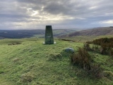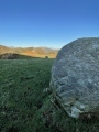 One for the trig point fans. A possible cairn on the summit of Auchensoul Hill, c. 0.75 miles WNW of Barr, a small village in South Ayrshire. The grassy mound on the summit of Auchensoul Hill is surmounted by an OS Trig Point. There are several embedded stones on the north and western arcs which may be kerb stones. There is also an obvious medium-sized stone located approximately 10m (30 feet) south-east of the cairn.