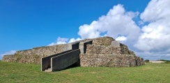 Dating to about 4600 BCE at the earliest, this is one of the most significant Cairns in Brittany, but unfortunately one of the most brutally vandalized. In 1942, German troops built a bunker and flak emplacement into the south east corner of the cairn, which completely destroyed one of the chambers and caused the collapse of the second one, which has since been restored. The megalithic entrance is thought to be an addition from Gallo-Roman times.